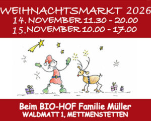 Ein zauberhafter Weihnachtsmarkt auf dem Bio-Hof der Familie Müller. In diesem Jahr mit grosser Attraktion: Die Oesch’s die Dritten kommen! Tickets für die Oesch’s jetzt erhältlich!