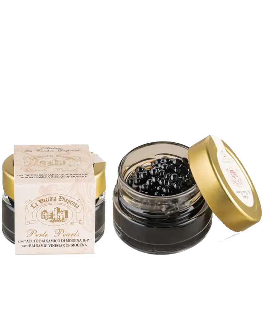 Hergestellt werden sie durch ein modernes Verfahren der Molekularküche, die sogenannte Sphärifikation – eine innovative Art, den hochwertigen Balsamico von La Vecchia Dispensa ganz neu zu genießen.