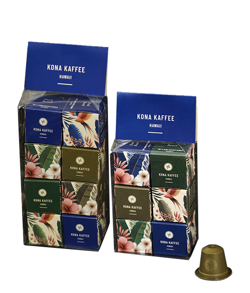 Mit diesem Kaffee-Probier-Set in der 6er- oder 8er-Variante entdecken Sie alle aktuell verfügbaren Kona Kaffee Röstungen ganz entspannt zu Hause. Die Kaffees sind in grünkompostierbaren Kapseln verpackt und kompatibel mit Nespresso®-Maschinen. So können Sie jede Röstung in Ruhe testen, bevor Sie sich für eine Großpackung mit 20 Kapseln Ihrer Lieblingssorte entscheiden.
