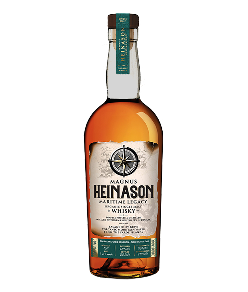 Magnus Heinason Organic Single Malt entsteht in der Thornæs Distillery durch zweifache Pot-Still-Destillation aus biologisch angebautem Dänischen Gerstenmalz. Nach dem Brennvorgang übernehmen Magnus Heinason die vollständige Verantwortung für die Reifung und begleiten jeden Schritt mit grösster Sorgfalt.