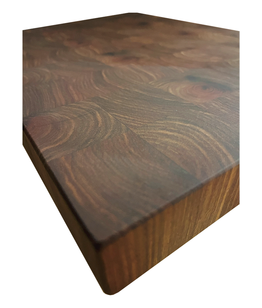Seine besonderen Eigenschaften machen es jedoch auch perfekt für Schneidebretter: Kiaat schrumpft extrem wenig, gilt als sehr formstabil und verändert sich weder bei Feuchtigkeit noch bei Kontakt mit Wasser. So bleibt es zuverlässig beständig und bietet die perfekte Grundlage für langlebige Küchenutensilien.